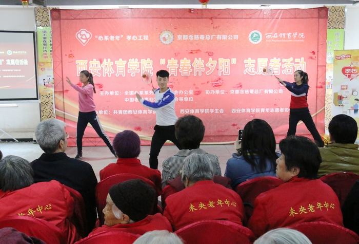 本网讯 12月19日,我院作为“心系老年”孝心工程——“青春伴夕阳”西安志愿者高校的代表之一,走进西安市未央区老年福利服务中心为那里的老年朋友送去了温暖和祝福。