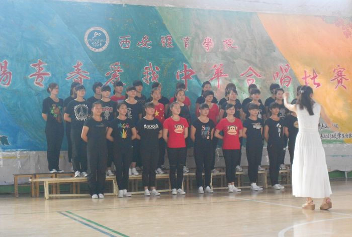 本网讯6月10日,由体育教育系2013级主办的“激扬青春爱我中华”合唱比赛在沣峪校区排球馆开赛。