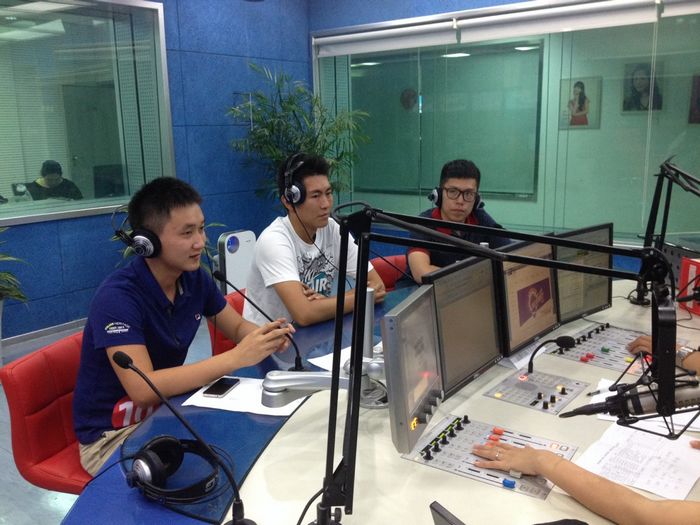 比赛结束后,前三甲(左一 王言)做客郑州新闻广播《城市热线》节目