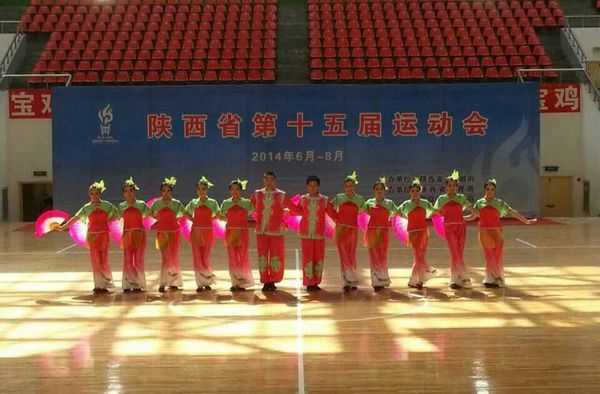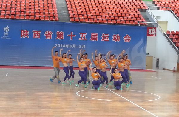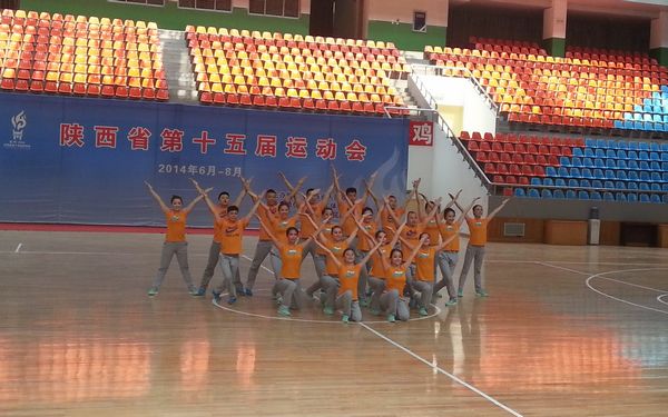 本网讯我院体育艺术系30名教师,代表陕西省教育系统参加了陕西省第十五届运动会“体育彩票杯”(行业组)健身秧歌、广场健身舞、广播体操三项比赛。比赛于2014年6月18日—24日在宝鸡市体育馆举行。