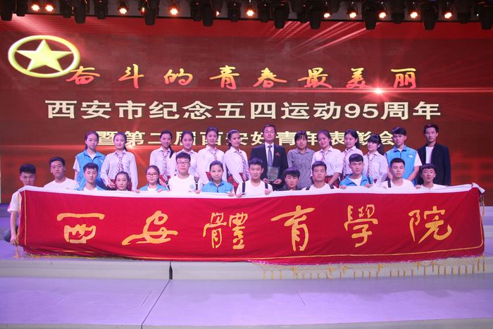 本网讯5月4日晚,由团西安市委、西安市文明办、西安日报社、西安广播电视台、西安市青年联合会联合主办的“奋斗的青春最美丽——西安市纪念五四运动九十五周年暨第二届西安好青年表彰会”在曲江落幕。我院团委书记高月宏获 “西安好青年”志愿奉献好青年荣誉称号。我院大学生艺术团精心创编的舞台情景剧《斑马线》以志愿奉献为题材,以精湛的技艺和极具表现力的艺术形式获得一致好评。