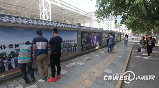 西安体院体育文化墙引起过往市民的驻足"学习"