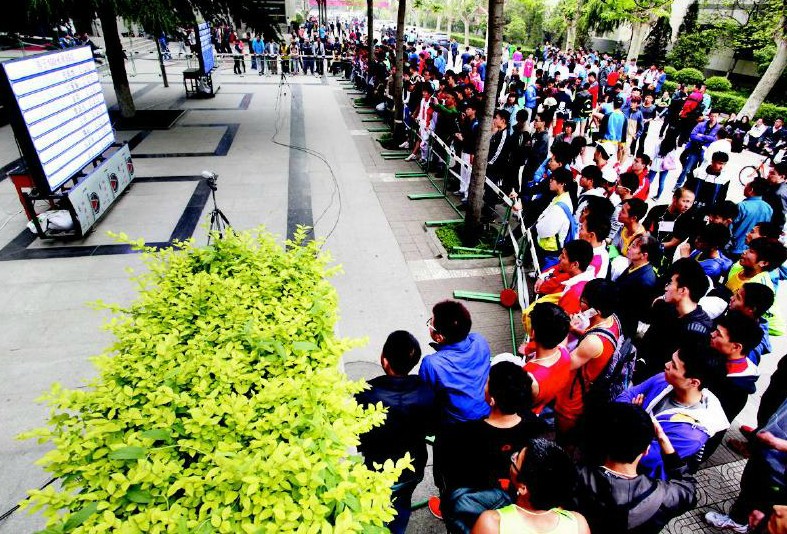 与此同时,记者也发现了今年陕西体育生“大考”的一个新现象,即考生考完之后不会再围着考场等待自己考试成绩的公布,而是在考试一结束就跑到安放在距离考场不远的两个LED大屏前等待自己的成绩。记者通过西安体育学院招生办公室才知道,原来这是西安体院引进的一个“高科技”设备,这将让陕西体育生“大考”更加透明公开,也更显公平和公正。