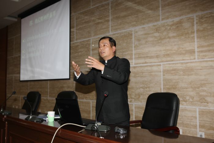 马文国主任从武的本质和尚武精神的内涵出发,用西方“兵圣”克劳塞维茨的军事学理论和毛泽东的军事思想分析战争的特点,指出尚武精神是提高军队战斗力和战斗作风的重要因素,在战争中起着至关重要的作用。他根据自己多年来对传统武学和古典武艺的研究,对军队如何蓄养尚武精神提出建议。他指出,尚武精神的核心是刚健强大、忠诚担当、视死如归、舍生取义。具有尚武精神和亮剑精神的军队是强大的,才能在战争中勇打胜仗,能够承担捍卫国家民族尊严和保家卫国的神圣使命。以军旅武艺为主要内容的古典武艺是西安体育学院的特色课程,军人通过训练,可以掌握攻防技能,蓄养尚武精神,强壮军威。