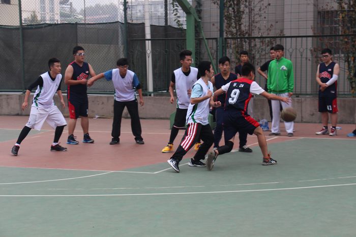 本网讯为进一步提高大一新生体育锻炼与团队协作意识,体育传媒系近日在室外篮球场举办了2013级篮球友谊赛。