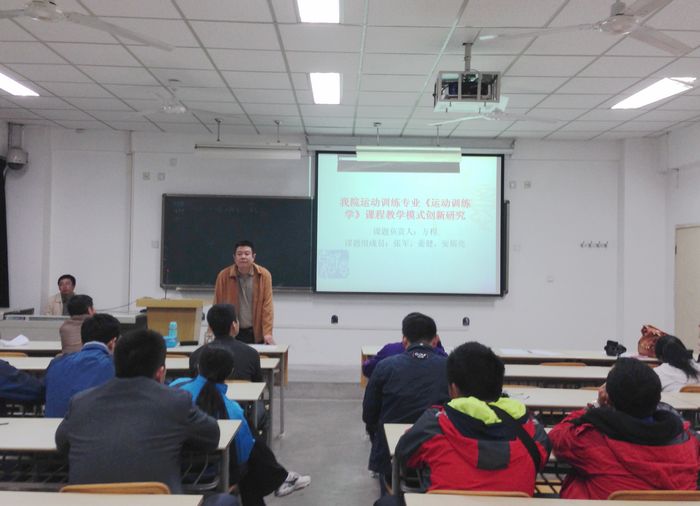 本网讯运动训练系10月22日晚在教学楼举行了该系首届教改研究论文报告会,40余位青年教师参加了会议。副主任黄谦教授对2012年系级教改课题的研究情况进行了全面的总结,并就设立系级教改研究课题以及举办教改研究论文报告会的目的、意义发表了讲话。该系2012年系级教改研究项目负责人代表还就课题的研究背景、意义、内容、方法、过程、结果及结论作了充分详实的报告。与会老师也提出了许多建设性的意见和建议,达到了激发研究热情,活跃学术氛围的目的。