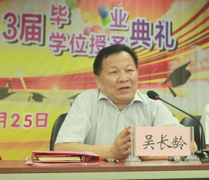 本网讯6月25日,我院2013届毕业生毕业典礼暨学位授予仪式在新教学楼一楼报告厅隆重举行。党委书记吴长龄,院长周里,党委副书记苏义民,副院长雷新声,党委委员、组织部长刘新平,党委委员、党政办主任陈彦在主席台就坐。学院各单位各部门负责人、教师代表、毕业生参加了典礼。大会由副院长雷新声主持。