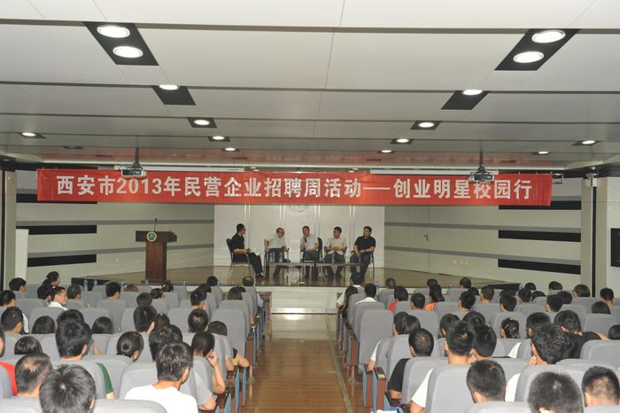 走进校园与我院大学生分享创业认识、创业体会、创业建议的陕西省创业明星分别是:司鹏俊,1986年生,陕西雅润生活用品有限公司创始人;刘博,1982年生,西安爱拼电子科技有限公司创始人;储卓,1987年生,西安雅智服饰有限公司创始人;张欢,1982年生,西安捷星餐饮管理服务有限公司创始人,采访嘉宾由我院2011级播音主持专业学生王彬担任,四位创业明星通过访谈形式根据自己的创业历程分享自身创业经验,告诉大学生朋友们,要有梦想,要脚踏实地,要坚持自己,创业是一个艰苦而有意义的事情。