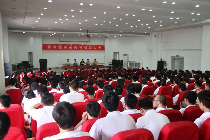 本网讯 近日,体育教育系2014届实习动员大会在教学楼五楼报告厅召开。体育教育专业、特殊教育专业共460名学生参加了会议。体育教育系负责人、辅导员和赵卫民等11名校内实习指导教师出席了会议。大会由李倩主持。