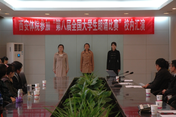 本网讯 为使我院学子以良好的精神面貌参加在北京举行的“第八届全国大学生朗诵比赛”,日前,团委在行政楼大会议室举行“第八届全国大学生朗诵比赛”校内汇演。党委副书记朱元利,学工部及体育传媒系负责人、播音教研室相关教师出席观看了汇报表演。