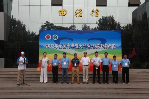 本网讯7月18日下午,2012年全国青年暨大学生地掷球锦标赛及全国地掷球健身展示大会在我院田径馆前举行开幕式。本次比赛由国家体育总局小球管理中心、中国掷球协会主办,由我院承办,来自全国32支代表队的393人将在8天内角逐塑质球、大金属球、小金属球、指弹球四个项目的比赛。我院副院长、本次大赛执行主任雷新声,国家体育总局小球运动管理中心运动一部部长、中国掷球协会秘书长刘荣耀,国家体育总局小球运动管理中心项目负责人、中国掷球协会副秘书长钟国伟,我院竞训处处长邵强、副处长杨亚玲,裁判长雷甲谋等出席了开幕式。