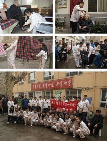 本网讯继3月5日举办了主题为“巩固创建文明校园成果,做新时期雷锋式大学生”活动之后,3月17日上午,运动训练系2009级30余名同学在辅导员老师的带领下,自带清洁工具,来到西安市碑林区民政局文艺路街道办金秋老年公寓进行学雷锋献爱心活动,为老人们擦玻璃,扫地,洗衣服,收拾杂物等。同学们还带去了精心准备的节目,包括歌唱、舞蹈、太极拳、跆拳道、健美操等表演,给老人们带去了欢乐,带去了温暖。