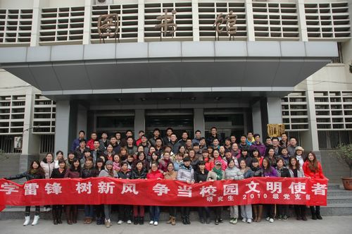 日前,研究生部2010级党支部组织学生到院图书馆进行义务劳动,践行雷锋精神。同学们帮忙整理图书馆库房堆积的各种书刊,并帮助清扫图书馆各室卫生。在馆藏书目、种类较多的情况下,同学们分成小组,给各类书目都注上标签,并分门别类放置,很快就使图书馆变得更加整洁有序。