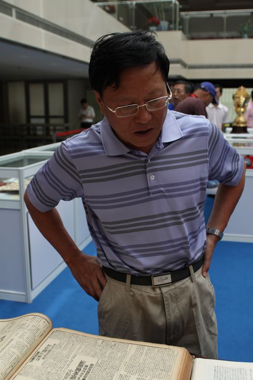 中国红色体育博物馆负责人史进向参观人员介绍馆藏资料