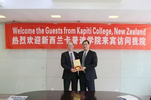 新西兰Kapiti学院院长Tony Kane与我院副院长权德庆教授会谈、互赠礼品