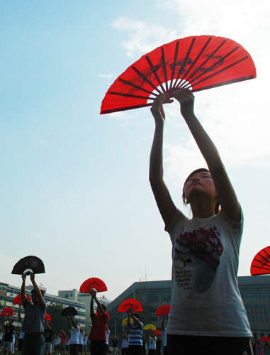尽管此前只排练了短短几日,队员们表演中展现出的动感、激情与积极向上的人文风采还是赢得了在场观众的阵阵掌声。王建军局长在随后的讲话中对大家的精彩表演表示肯定,对不畏酷暑,刻苦训练的广大师生以及参演小朋友们表示慰问和衷心感谢。他指出,西安体院是建国初就成立的具有优秀传统和良好作风的学校,在西北地区乃至全国享有盛名,通过此次表演活动,将进一步向外界展示西安体院乃至陕西体育的风采。王局长强调,西体承演的开幕式三篇章之“科学健身、欢乐三秦”一章,是开幕式的重中之重,希望大家发挥体育人敢于拼搏,不怕疲劳的精神,继续全力投入排练,并预祝表演取得圆满成功。