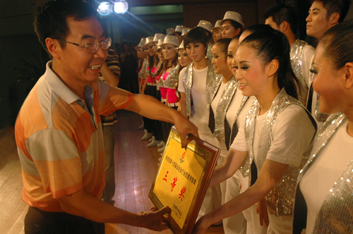 由我院承办的陕西省第十四届省运会健身排舞比赛于9月5日在陕西省妇女儿童活动中心举行。本次比赛共有八个行业单位十支代表队参加。竞赛委员会主任、院长苏明理,竞赛委员会副主任、党委副书记朱元利为优胜单位颁奖。