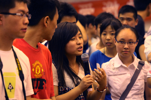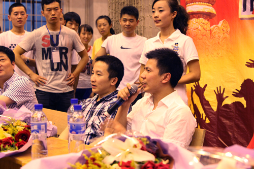 25日晚在院篮球馆四楼,同学们得以近距离领略奥运冠军的风采。互动交流环节中,大家踊跃提问,三位冠军一一认真作答。张湘翔用自己的成长故事告诉同学们要热爱体育,热爱生活。他认为一个优秀的运动员不仅要具有精湛的运动技术与强健的体魄,也应具备丰富的文化知识与敏锐的思维。石智勇则在谈话中表达了他对广东亚运会的祝福,希望“广东亚运会能办出水平,中国金牌拿得多多的”。随后,陈宏在现场与我院师生进行了羽毛球技术切磋,重现了他在奥运赛场的风采,现场阵阵热烈的掌声、喝彩声将气氛推向高潮。
