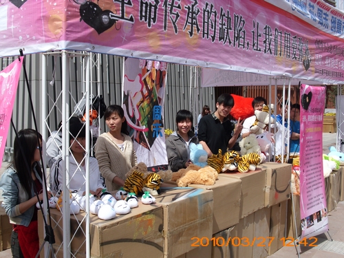 3月27日,我院青年志愿者协会应邀参加了由中国社会福利教育基金会发起的口号为“还好,我们的爱不脆弱”的《成骨不全患者救助项目》。院青年志愿者协会12名成员积极参加了在大唐不夜城举行的义卖活动,并将当天义卖赚得的555元全部捐给项目设立的“瓷娃娃”罕见病关爱基金。院青协同时呼吁更多师生能参与到该活动中来。生命传承的缺陷,让我们用爱弥补。