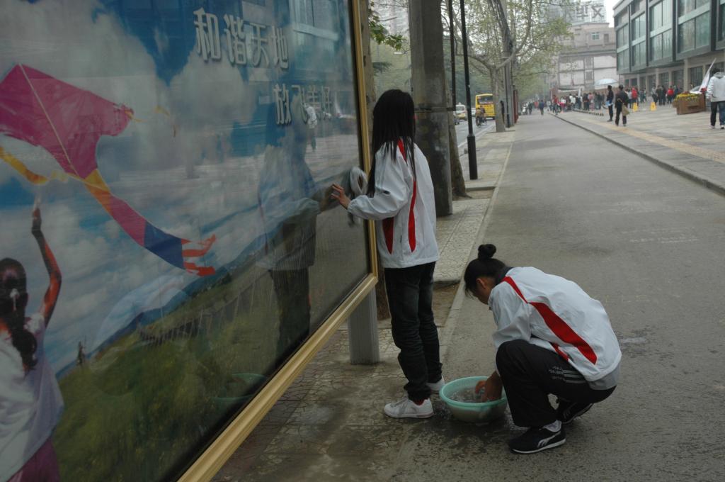 11日早晨八点半,志愿者们以各系为单位,拿着卫生工具,打着标语热火朝天地劳动起来。有的擦拭站牌,有的清扫街道,有的拾捡垃圾,还有的同学为了清除路边贴的小广告,甚至用自己的指甲进行清理。经过大家的努力,含光路很快变得干净整洁起来。师生劳动的壮观场面引来不少群众的赞许;而师生们也表示参加此次活动展现了体院人的风采,增强了大家的环保意识。