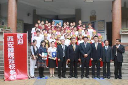 代表团参观了台湾树德科技大学、大叶大学、台湾体育大学、台北市立体育学院、文华高级中学5所院校的教学科研设施、体育训练设施、场馆等,与对方院校专家学者进行了广泛交流,并签订了有关校际合作协议。访问期间,随团访问的12名艺术系学生组成的舞蹈队和啦啦操队与台湾五所院校的舞蹈队及啦啦操队进行了交流表演,活跃了气氛,增进了友谊,丰富了双方队员的专业知识。