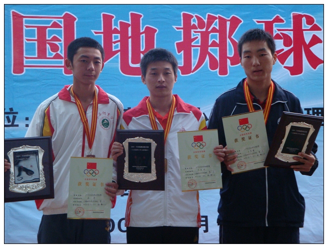 10月30日至11月8日,全国地掷球精英赛在浙江衢州举行。经过五天的激烈争夺,我院运动系07级孙卓、09级李昊两位同学代表学院参赛并获得男子小金属双人项目赛冠军,运动系09级马东同学获得男子单人连续抛击项目亚军。