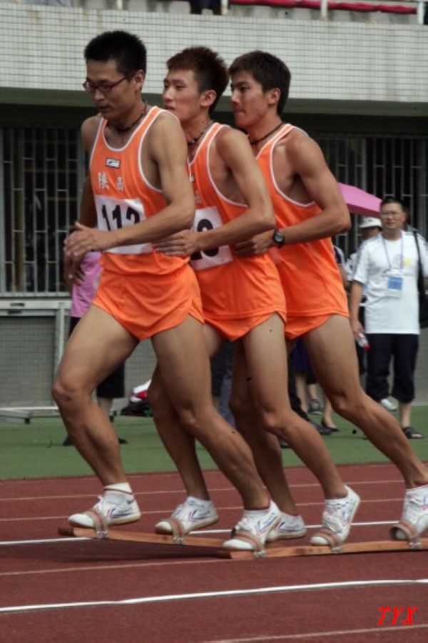 新闻链接:高脚竞速是运动员双手各持一杆,脚踩杆上脚蹬踏奔跑,以在同等距离所用时间多少决定名次的比赛,板鞋竞速则是指多名运动员一同将脚套在同一双木制板鞋上进行竞速。这两个项目均属第九届全国少数民族传统体育运动会的竞赛项目。