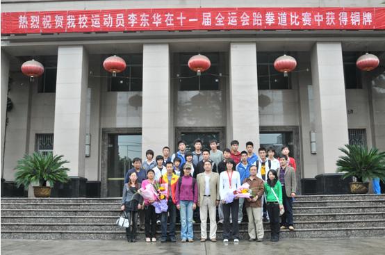 9月12日,第十一届全运会跆拳道决赛在山东滕州落幕。本次比赛从9月9日开始,来自全国39个代表团的300多名跆拳道运动员参加了8个级别的比赛,产生了8枚金牌。经过4天激烈比赛,我院跆拳道队运动员李东华代表陕西省,在女子+67公斤级比赛中获得铜牌,这枚铜牌也是陕西代表团在本次全运会决赛阶段获得的首枚奖牌。