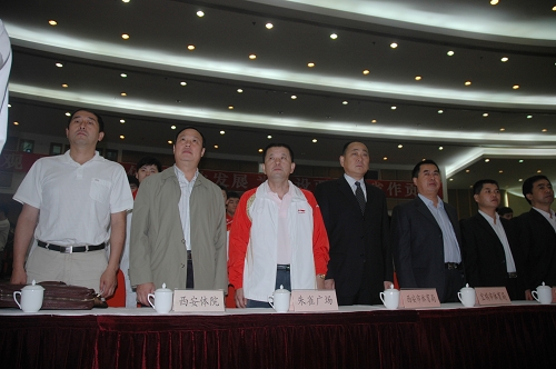 9月9日上午,全国第十一届运动会陕西省代表团成立暨誓师大会在西安国际会议中心隆重举行。我院院长苏明理,党委副书记苏义民,副院长权德庆、雷新声、周里等领导同志应邀出席了会议。陕西省副省长郑小明代表省委省政府向十一运会陕西代表团授旗,省体育局局长李明华代表陕西代表团接旗。郑小明表示,省委省政府将竭尽全力为我省代表团提供支持和保障,希望运动健儿们顽强拼搏,勇创佳绩。运动员代表郭文珺和教练员、训练单位代表张根学分别发言,决心以实际行动向三秦父老交上一份满意答卷。