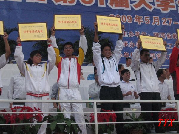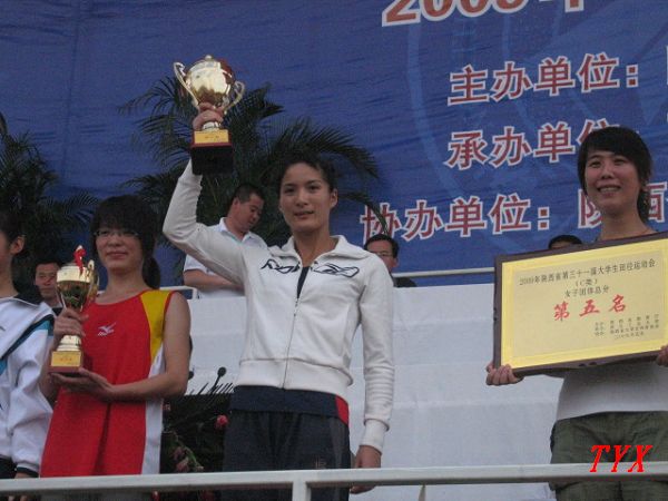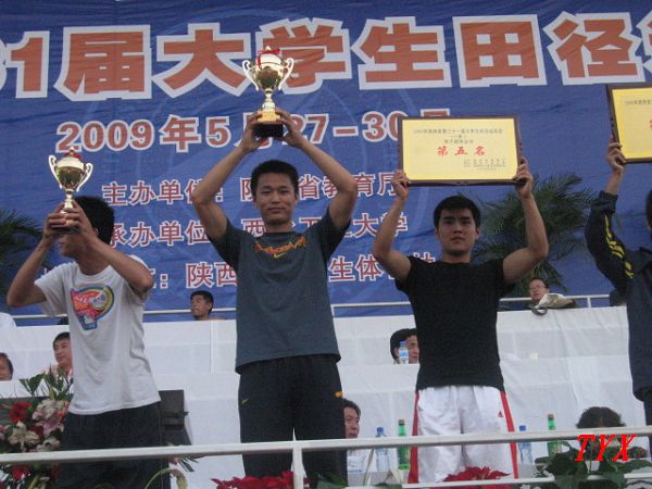 在日前结束的陕西省第三十一届大学生田径运动会上,我院代表队在领队田径教研室主任韩敬及教练许崇高、赵清波、刘占峰、郁成刚、马文新带领下获得男子团体总分、女子团体总分、男女团体总分第一名的成绩,并获得了精神文明奖。