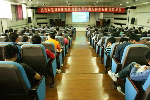 4月24日下午,国家体育总局群体司副司长刘国永在教学楼一楼报告厅为我院师生作了题为《北京奥运后—我国群众体育实践中的几个热点问题》的专题讲座。