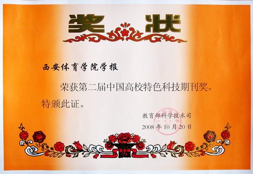 在刚刚结束的由教育部科技司委托中国高校科技期刊奖评审委员会组织实施的第二届中国高校优秀科技期刊评选中,《西安体育学院学报》脱颖而出,荣获“中国高校特色科技期刊奖”。在此次评选中,全国体育学院学报仅有五家分别摘获相关奖项。