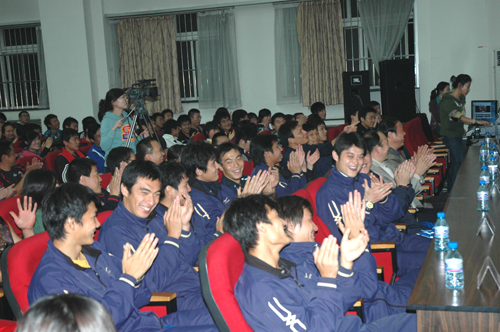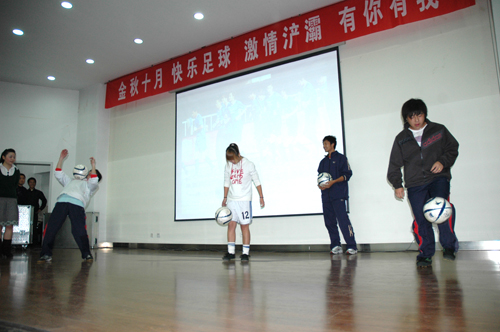 2008年10月29日晚,一台以“一路上有你--陕西中新浐灞足球队走进西安体育学院”为主题的联谊活动在我院举行。这也是一个职业足球队第一次走进大学校园。我院党委书记董小龙、院长苏明理参加了此次活动,师生们用各种不同的方式表达了对浐灞足球队的欢迎与支持。