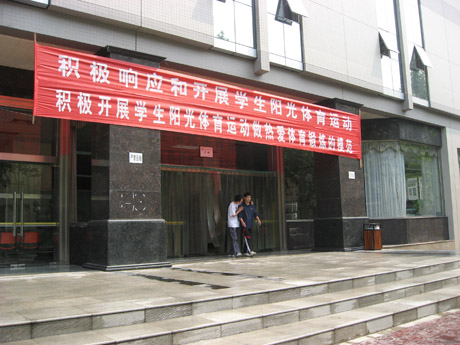 为配合教育部、国家体育总局、共青团中央三部委联合启动的“全国亿万学生阳光体育运动”活动,4月29日上午,我院组织学生在学生餐厅集体收看了三部委在北京举办的大型“全国亿万学生阳光体育运动启动仪式”电视直播节目。