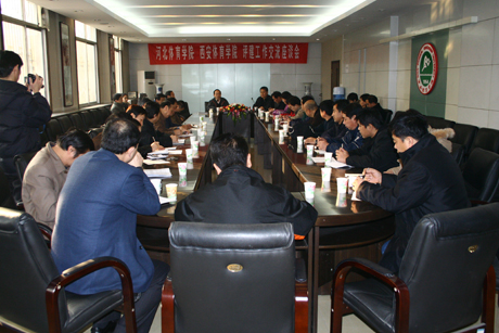 12月14日上午,河北体育学院院长孙班军等17位代表与我院领导和各部门负责人在院二楼大会议室召开了评建工作交流座谈会。我院党委书记董小龙、院长苏明理对河北体育学院评建工作代表团表示欢迎,并就我院刚刚结束不久的国家教育部本科教学工作水平评估与河北体育学院代表团进行了深度、友好的交流。