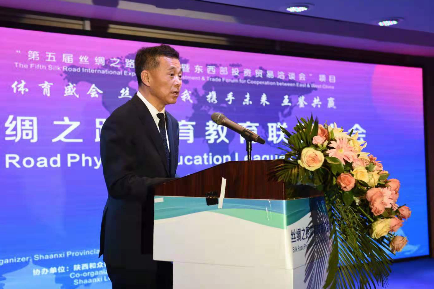 本网讯 5月11日-13日,由陕西省人民政府主办,陕西省教育厅、陕西省体育局、我校承办的“体育盛会 丝路有我 携手未来 互鉴共嬴---丝绸之路体育教育联盟大会”在大唐西市酒店隆重举行。此次活动是陕西省人民政府主办的“第五届丝绸之路博览会暨中国东西部投资贸易洽谈会”项目之一,来自境外20多所院校以及国内60多所院校和机构的嘉宾、代表参加大会。陕西省教育厅、陕西省体育局领导出席会议。
