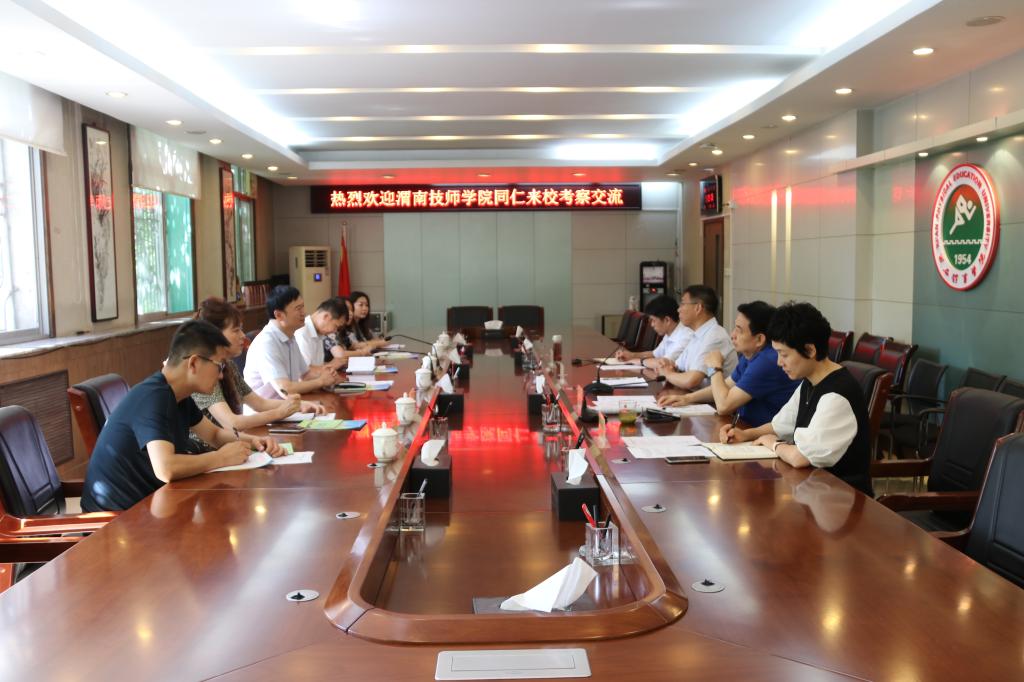 本网讯 6月4日上午,渭南技师学院党委书记曲志勇率相关职能部门负责人一行六人来我校考察交流。我校党委副书记文立新出席交流会,党委校长办公室主任张军、组织部部长何佰虎、人事处副处长李育红参加交流座谈。