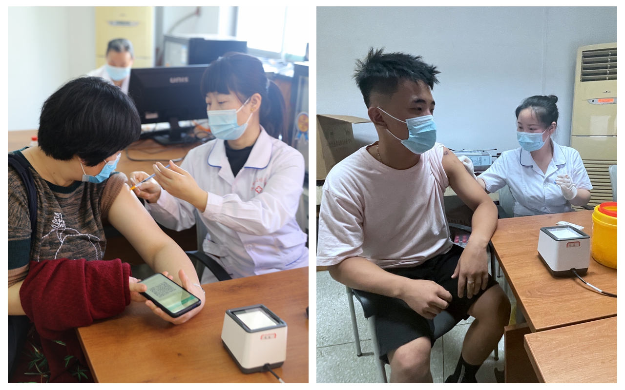 从上到下从左至右分别为接种疫苗签到、预检、排队、留观