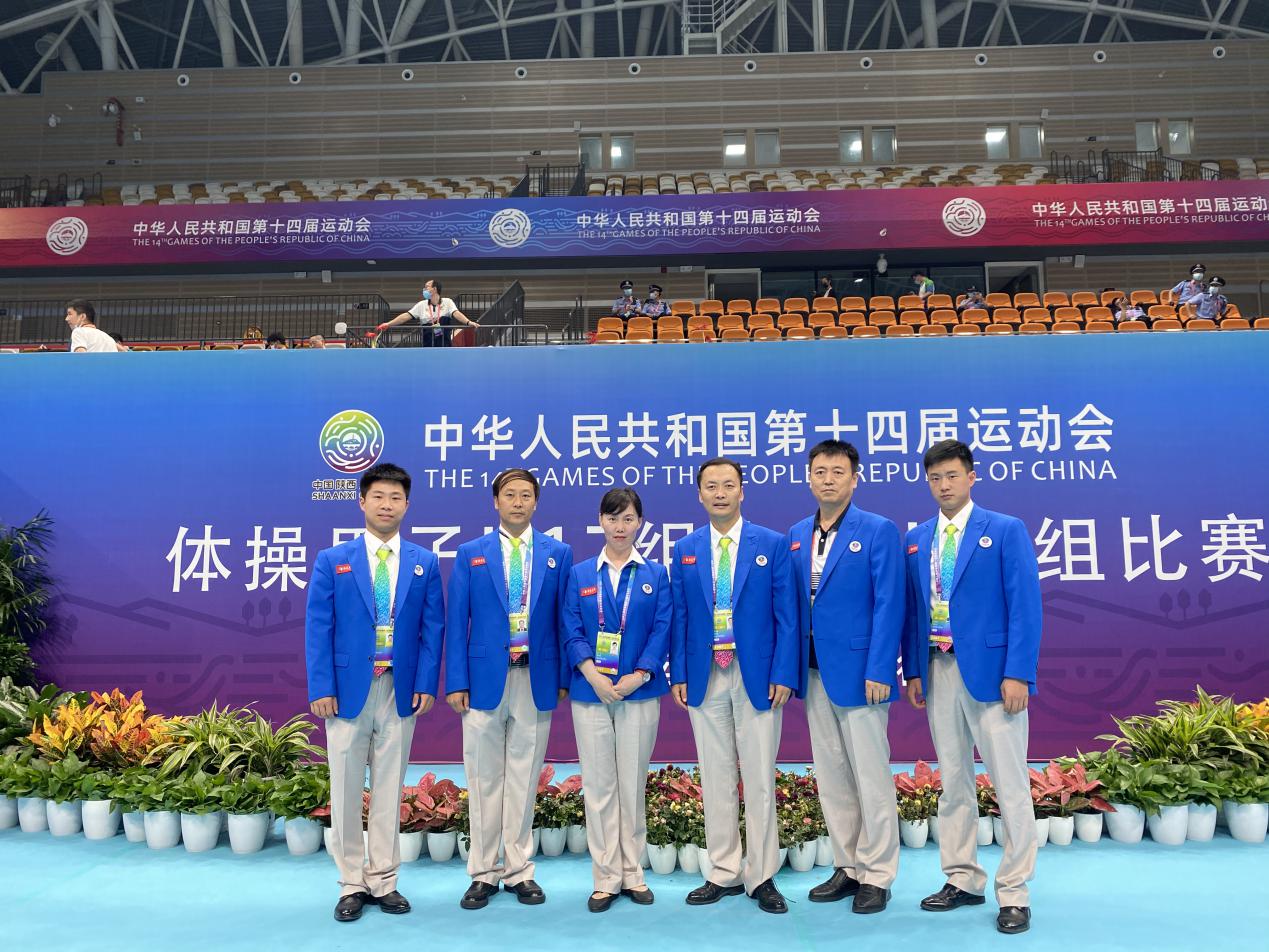 本网讯 7月7日-15日,第十四届全国运动会体操男子U17组、女子U14组比赛在陕西奥体中心体育馆举行,这也是十四运会的首场正赛,标志着十四运会正式开赛。我校发展规划处处长、体操国际级裁判马海涛教授,体育教育学院体操教研室冯俊彦、杨辉、张红副教授以及陈开拓、汤自龙等六位教师担任了比赛的裁判工作。