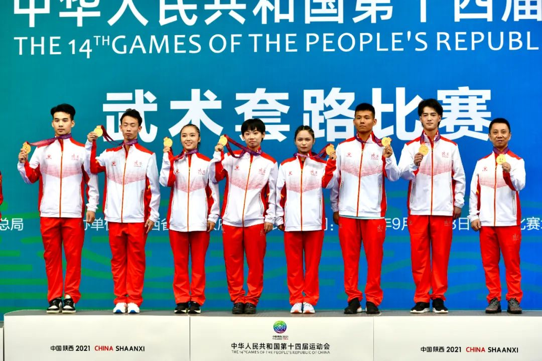 本网讯 9月1日至3日,中华人民共和国第十四届运动会武术套路比赛在陕西咸阳职业技术学院体育馆举行。我校武术学院学生陈颖、张寒松、王佳强、郑海涛、耿明浩参加了7人6项团体项目中的男子三人对练和女子二人对练比赛,经过一番激烈角逐,王佳强、郑海涛、耿明浩的三人徒手对练获得金牌,陈颖、张寒松获得女子双人对练银牌,为陕西队最终赢得武术套路团体项目金牌贡献了西体力量。