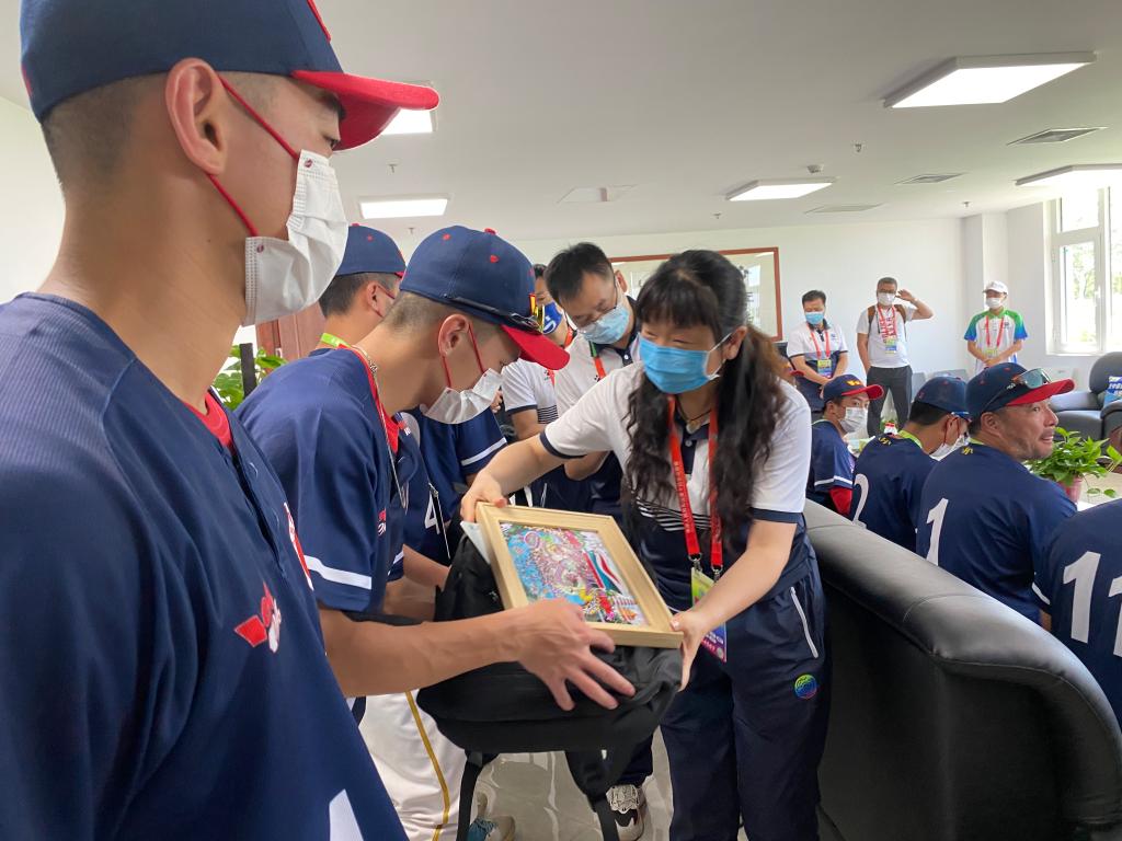 9月9日中午,香港队1:9负于东道主陕西队,自此香港队所有比赛全部完成,在离别之际,棒球项目竞赛委会在棒球场贵宾室为香港代表队举行送别交流会。执行主任赵军、李化分别向香港代表队赠送陕西文化特产—《户县农民画》,执行主任陈旭向香港代表队赠送十四运参赛纪念牌,香港队向竞委会回赠纪念品。香港队队长陈卓乔为了参加本届比赛辞掉工作、义不容辞投身比赛,对本届赛事的竞赛组织和保障服务给予高度赞许。香港队领队、香港棒球协会主席何迪夫说到,按照防疫要求,全队在深圳经历21天的隔离之后乘飞机到达西安机场并入住全运村,一路上感受到了满满的爱,各部门都给我们提供了很多的帮助,一路走来看到了祖国的强大和繁荣昌盛,期待4年后在粤港澳大湾区再相聚。