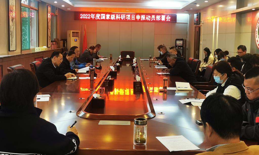 为切实做好2022年国家级科研项目的申报工作,力争国家级科研项目立项实现新突破,推动我校科研工作上台阶,10月21日下午,我校2022年度国家级科研项目申报动员部署会在行政楼二楼会议室召开。副校长谢英、各二级学院院长、分管科研副院长及科研联络员、科研平台基地负责人,以及科研处全体成员参加了会议。会议由科研处副处长王鹏主持。