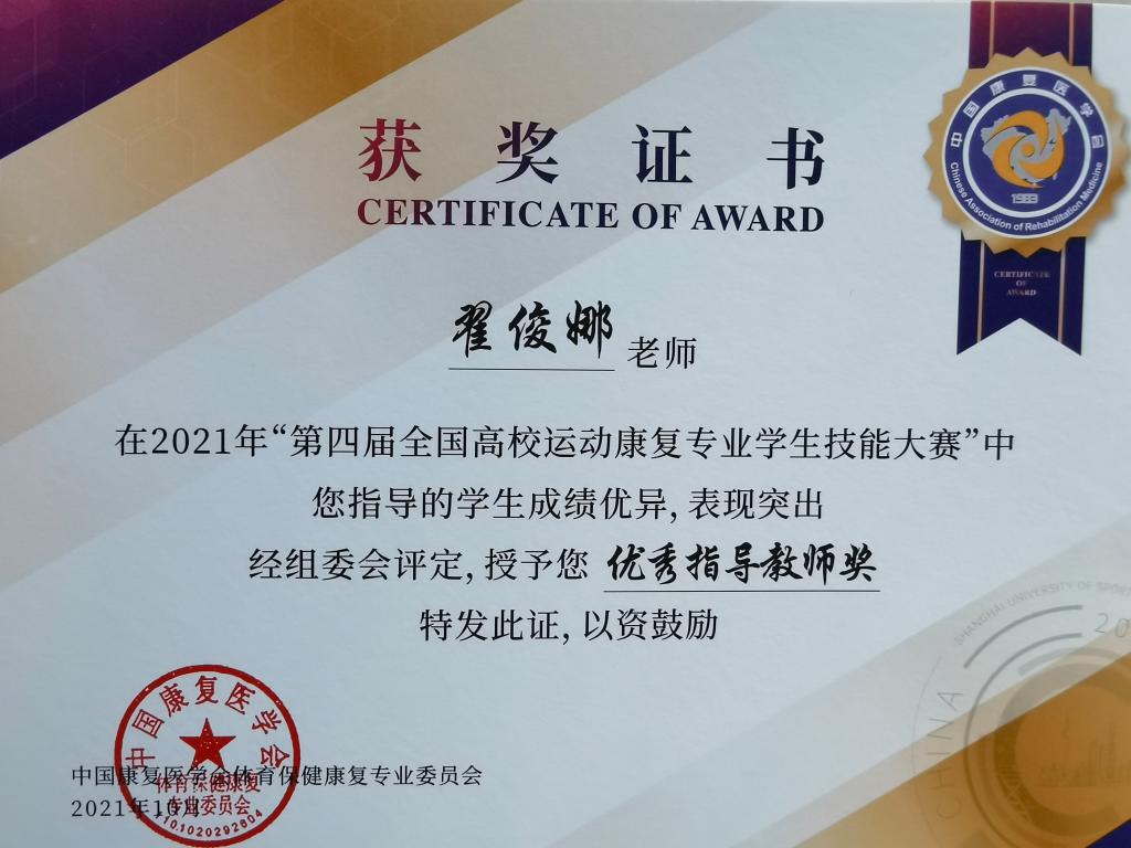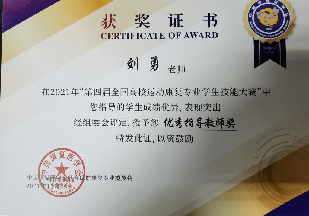 我校派出了运动与健康科学学院2018级康复治疗学专业杜雅琪、杨凝、杨一铭三名学生组成的代表队参赛,通过理论综合考试和三轮康复技能操作考核,经过激烈的角逐和评审,最终我校荣获第四届全国高校运动康复专业学生技能大赛三等奖,翟俊娜、邵丽娜、刘勇三位指导老师荣获优秀指导奖。