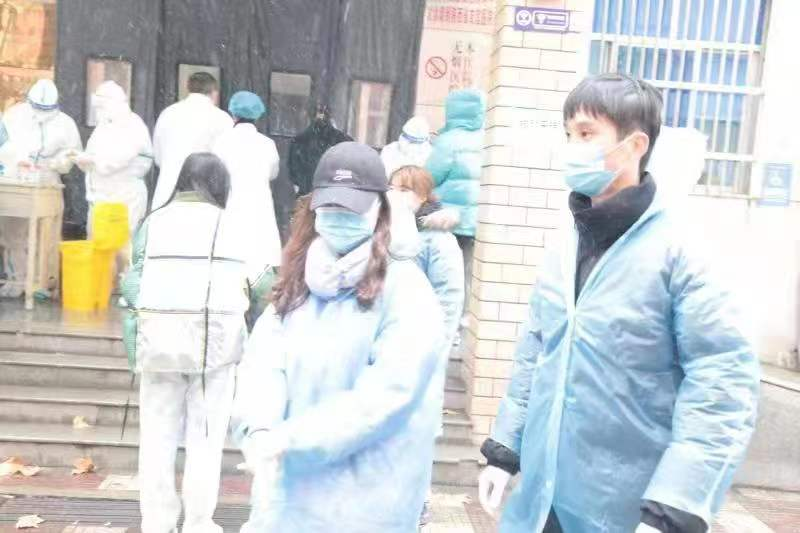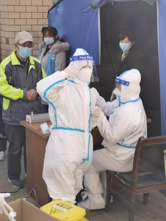 穿上防护服、协助校医院的医生进行一轮又一轮的核酸检测,手部消毒后,摘下防护面罩,从帽子开始卷着防护服一点点的脱下,厚厚的内料里,被包裹着的汗水慢慢地冒出,贴身的衣服早已湿透......面部被勒出了红痕,两只手早已起皱,为了方便工作,提高效率,大家尽量不喝水。他们身着白衣,心有锦缎。