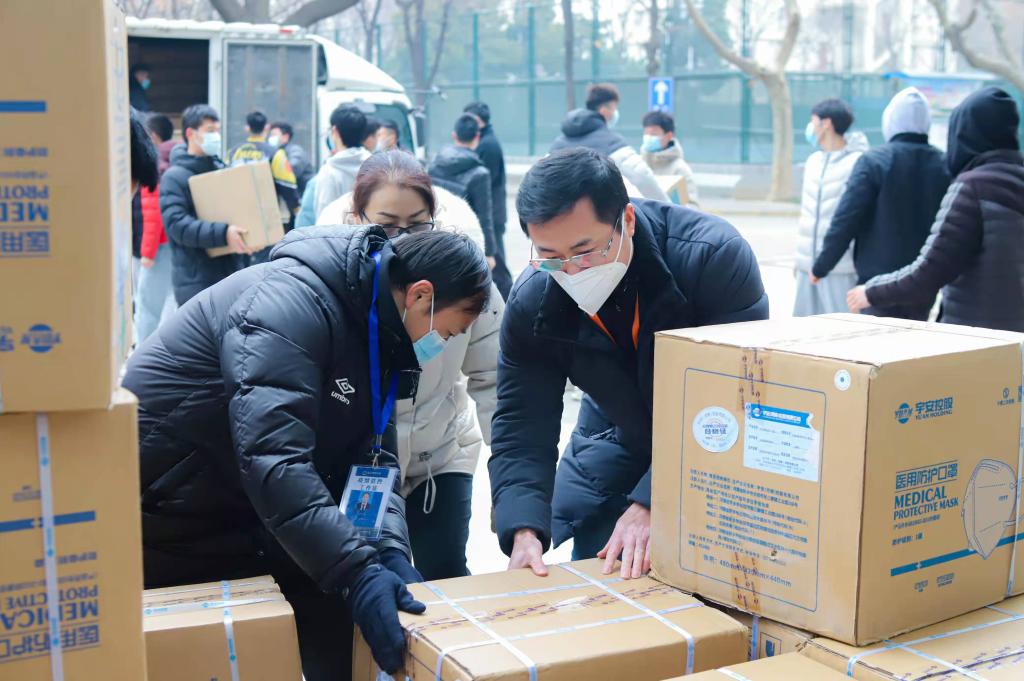 1月7日下午,在我校体育教育学院党委书记高月宏的带领下,体育教育专业2019级年级主任宗月民、特殊教育专业年级主任耿莉,辅导员张佳怡、宋昂等带领学生党员、入党积极分子、班团干部50余人,将满满一卡车的防疫物资搬下车。体操教研室党支部书记杨辉,教师李凤梅、陈开拓三位老师得知后,主动加入到物资搬运的队伍中。