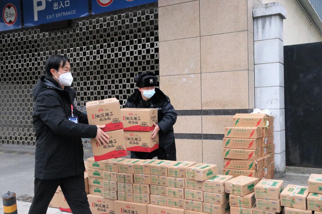 ✮1月5日,校园内的快递、水果店联合为学校捐赠了3000斤白菜、1500斤土豆等价值近万元的蔬菜,小杨超市、嘉云超市为学校捐赠方便面、面包、饼干、饮用水、口罩等共计121箱生活物资,现场后勤接收工作人员对店铺表示了感谢,并给予了高度评价。