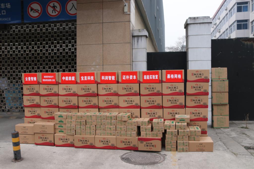 ✮我校艺术学院教师陆渟积极发挥党员先锋模范作用,经过多方协调,爱心企业蒜泥科技有限公司、西安迈朴资本管理有限公司、陕西宝昱科技工业有限公司、科润智能科技股份有限公司、西安募格网络科技有限公司、西安云景智维科技有限公司、陕西中能防腐建设发展有限公司、西安党外知识分子联谊会职业经理人分会等八家公司联合助力,向我校捐赠了一批食品及消毒凝胶等抗疫物资。1月4日下午,副校长刘新民及艺术学院领导班子在校东门迎接并会见了捐赠公司代表,对他们的大爱、善举表示诚挚的感谢。