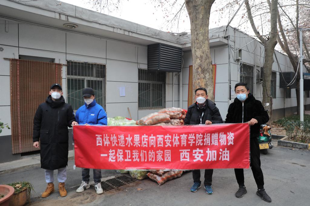 ✮2021年12月29日,一条“武汉鑫阿丹园光谷国际酒店向西安体育学院捐赠物资”的视频新闻刷爆了每一位西体师生的朋友圈,捐赠车上“西安加油”的字样不仅让此刻每一位身处疫情之中的师生倍感温暖,39290斤蔬菜更为封闭管理下物资紧缺的学校解决了燃眉之急。