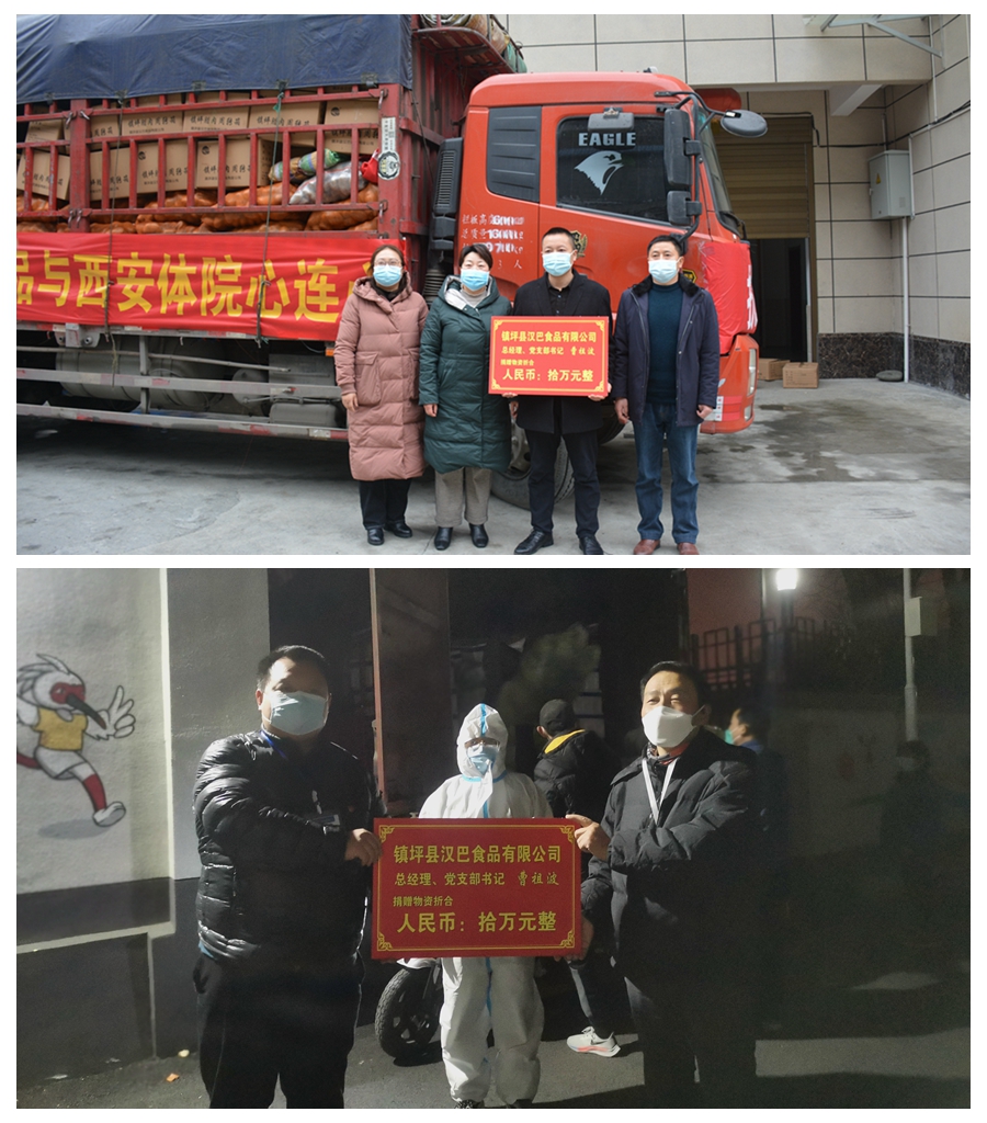 ✮1月4日,在镇坪县委常委、统战部部长李俊,镇坪县工商联党组书记陈正平的关心支持下,创业不久的我校体育教育学院2009届毕业生、镇坪县汉巴食品有限公司总经理曹祖波,带领员工连续奋战四个日夜,紧急为母校筹集调运捐赠了1000斤腊肉、850只腊鸡、480包腊肉干、4吨土豆等价值十万元的肉菜,后又得知家属区买菜不便,曹祖波又赶往安康采购蔬菜、葱姜蒜等生活物资,将满载着对母校关爱与祝福的抗疫物资送上西康高速。那一刻,曹祖波满怀欣喜,他说:“毕业多年,我始终不曾忘记母校的培养,这是我第一次用行动回馈母校,希望校园平安,早日抗疫成功”。