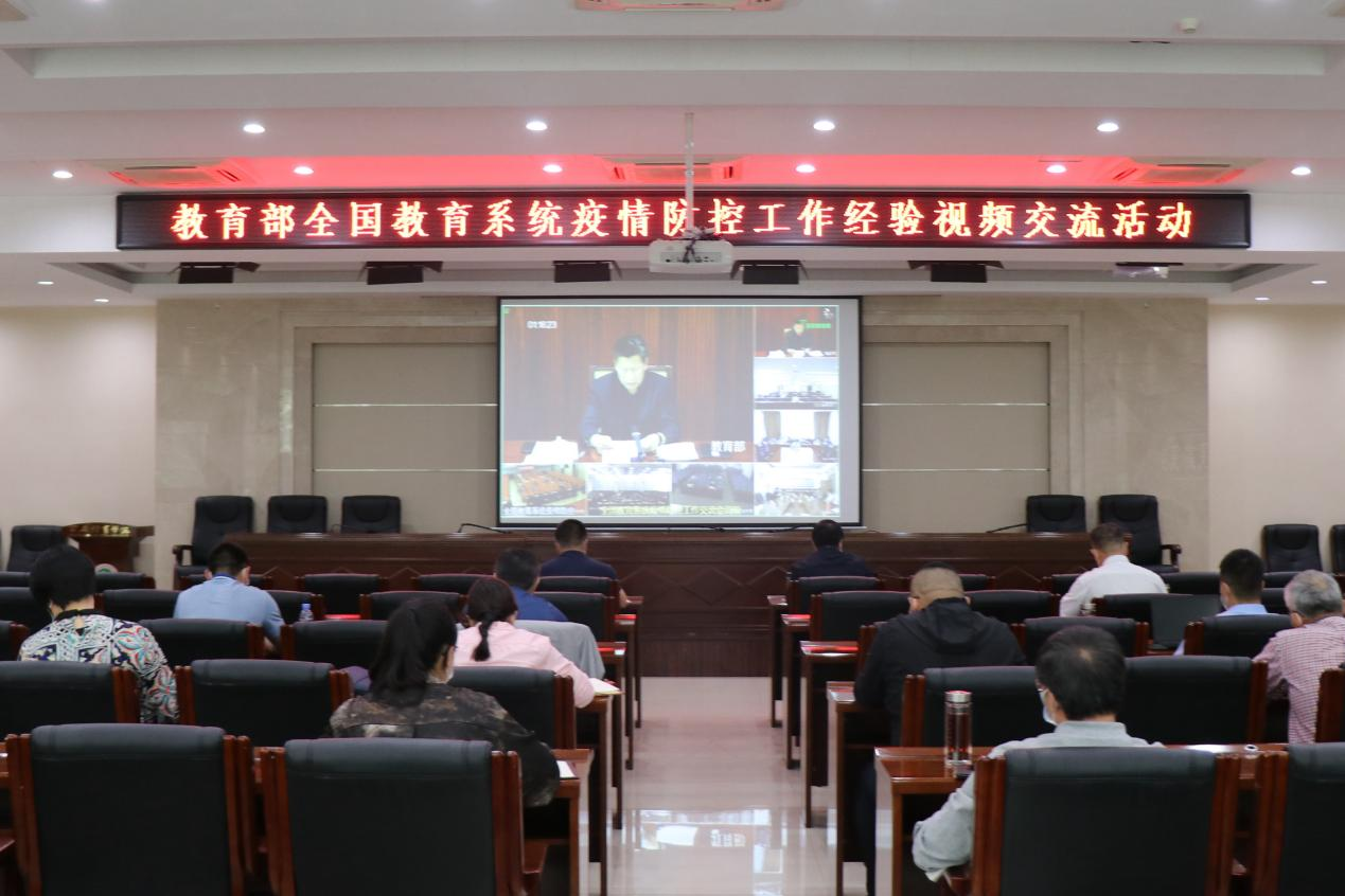 本网讯 4月26日下午,教育部召开全国教育系统疫情防控工作调度暨经验交流视频会议,会议对“五一”假期教育系统疫情防控工作作出部署,中国疾控中心流行病学首席专家吴尊友解析了近期国内外疫情防控形势,针对奥密克戎变异株特点提出防控建议;教育部体育卫生与艺术教育司司长王登峰发表重要讲话。随后,省教育厅召开全省教育系统疫情防控工作经验视频交流活动,厅长刘建林传达省委疫情防控工作会议精神,并就全省五一假期疫情防控工作提出具体要求。我校在二号行政楼六楼会议厅设立分会场,全体校领导出席,各单位、部门相关负责人参加。